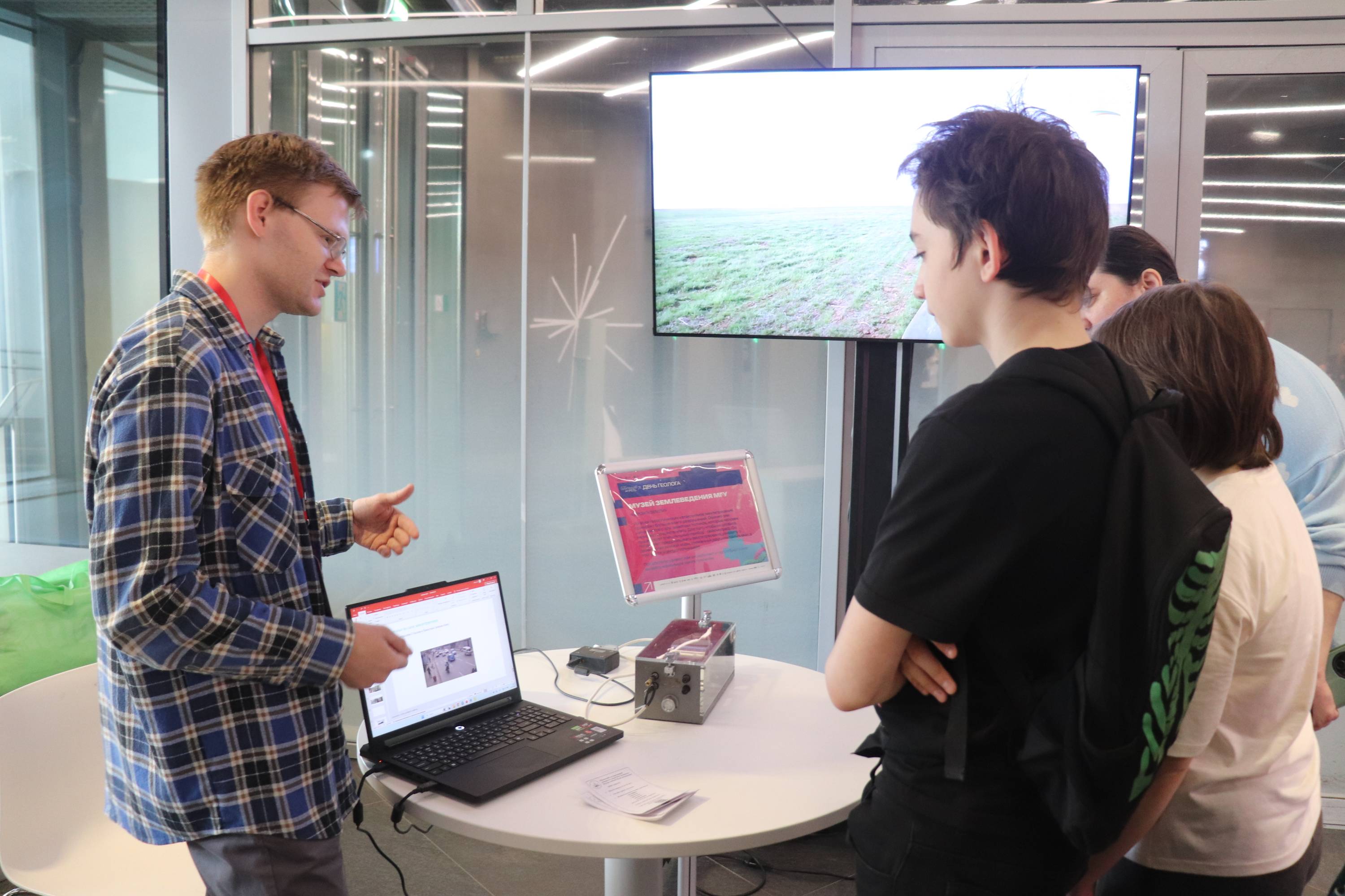 4 апреля Музей землеведения принял участие в Дне геолога в Зарядье в рамках "Научного апреля в Заповедном посольстве". Гости программы научились отличать истинный метеорит от псевдометеорита, поиграли в интерактивные игры, отгадали загадки и викторины на самые разные геологические темы и сделали себе бумажных динозавриков. Также посетители узнали, что такое сейсмограф, как он работает и попробовали сами вызвать маленькое землетрясение.