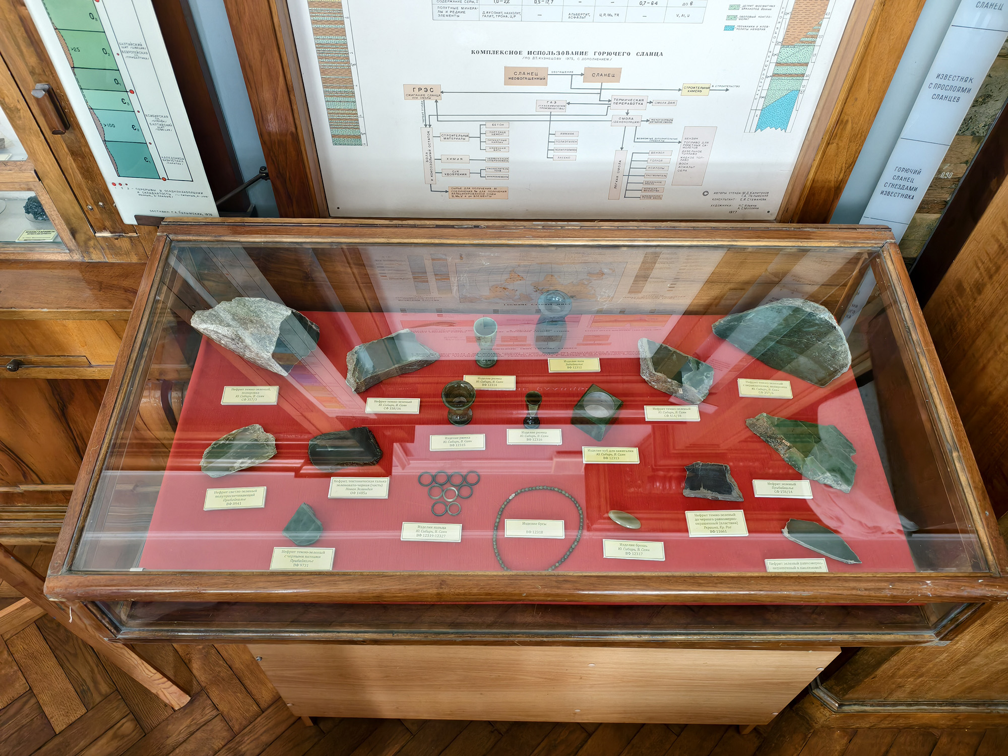 1 апреля 2026 г. в преддверии Дня геолога в Музее землеведения открылась выставка «Нефрит из коллекции Музея землеведения». Экспозиция подготовлена сотрудниками группы фондов в рамках долгосрочного проекта по комплектованию коллекций ценных минералов и горных пород – как первый этап работы с коллекцией нефрита. Ранее в проекте были скомплектованы коллекции и выпущены каталоги фианита, малахита, янтаря, яшмы, аметиста, бирюзы и лазурита.
