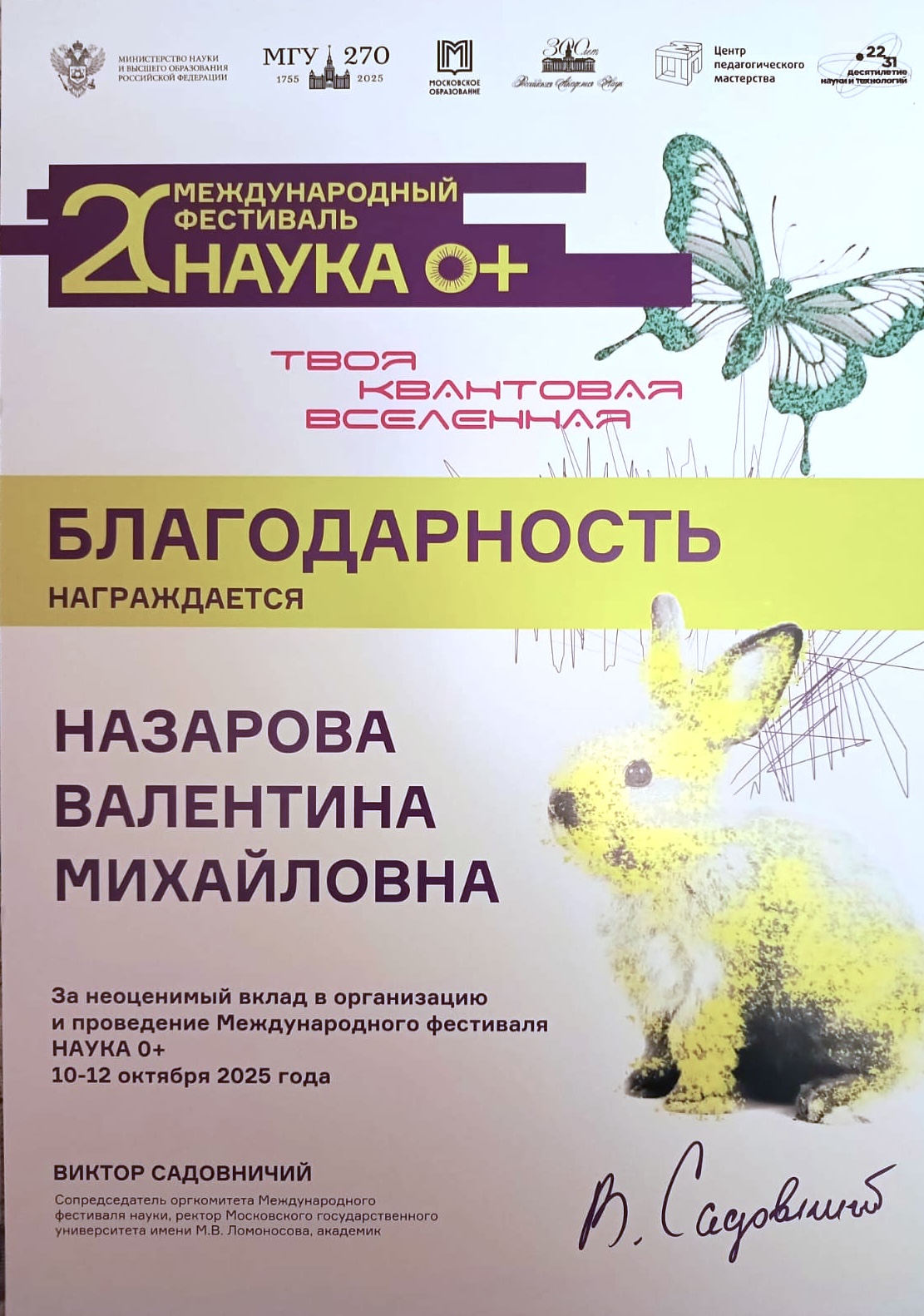 В рамках Фестиваля науки в субботу 11 октября 2025 г. старший научный сотрудник Музея землеведения МГУ к.г.-м.н. Назарова Валентина Михайловна в Московском Дворце пионеров прочла лекцию «Замечательные ископаемые животные – конодонты». Эта группа животных впервые была открыта на территории России, но сейчас она известна по всему миру. Конодонты используются для определения геологического возраста пород, корреляции удалённых разрезов, восстановления условий палеосреды. Всё это необходимо для систематического поиска полезных ископаемых, особенно углеводородов. Кроме того, на примере конодонтов можно анализировать эволюционные изменения и процессы возникновения новых видов.
